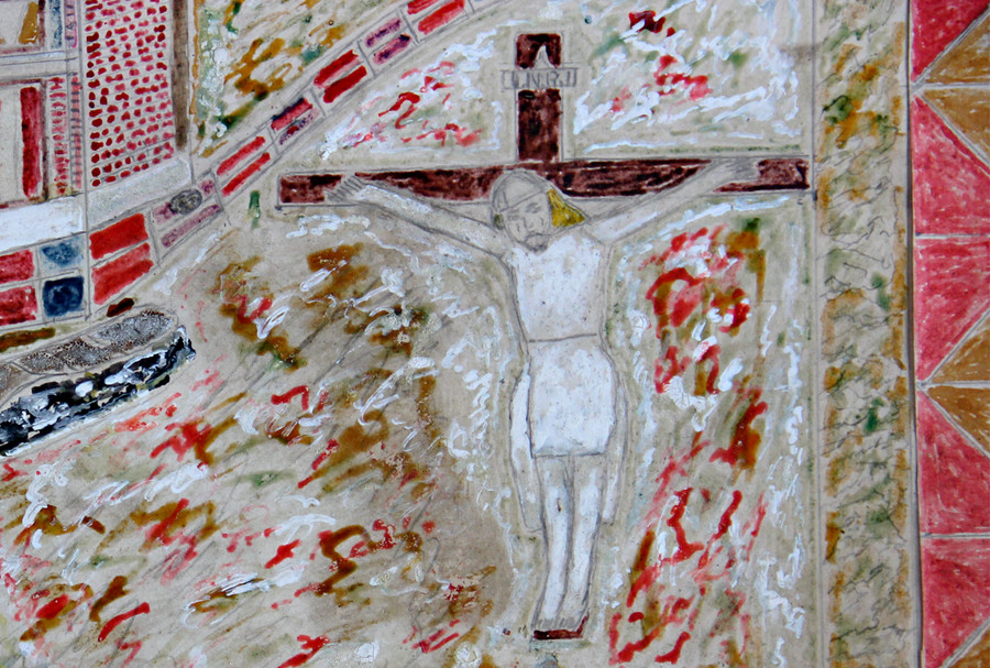 Zu A. R. Colemann habe ich keine biografischen Daten. Die Arbeit »Adoration Infirm. Ward« ist auf 1965 datiert und erinnert mit ihren vielen religiösen Symbolen und der Inschrift am unteren Bildrand an ein Votivbild.